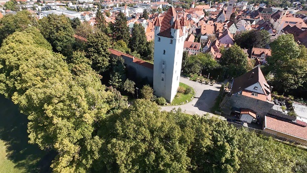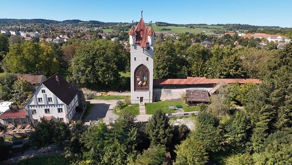 Seit über 600 Jahren erhebt er sich über Kaufbeuren: Der Fünfknopfturm.